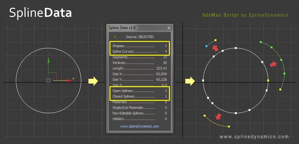 Spline Data is a really handy tool to get realtime information about the spline curves in your 3ds Max scene or selection.
